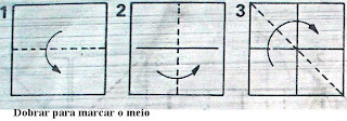 3-Faça as dobraduras de acordo com o desenho e as fotos a seguir.